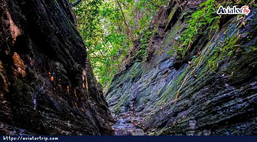 চালন্দা গিরিপথের পাহাড়ের গাঁ বেয়ে পানি নামার কারনে কোথাও ভেজা, কোথাও শুকনো। গিরিপথের ভেতরে ঢুকতেই শরীরটা কেমন যেন হিমশীতল হয়ে উঠবে। দুই পাহাড়ের মধ্যে হাত ও পায়ের সমন্বয়ে এগিয়ে যেতে হয়। দুই পাশে পাহাড়ের খাঁজ। কোথাও পাহাড়ের খাড়া ঢাল বেয়ে যেন নেমেছে রোদ। খাঁজে খাঁজে রোদের বর্ণিল চিত্র। কোথাও কুয়াশার মতো আবছা আঁধার। তবে এসবের ভেতরেও কানে আসবে পাখির কিচিরমিচির। গিরিপথে প্রায় আধ কিলোমিটার ঝুঁকিহীনভাবে এগিয়ে যাওয়া যাবে। আরেকটু ভেতরের দিকে যেতেই মনে হতে পারে একটা ভূতুড়ে পরিবেশে এসে পড়েছেন। পথচলাও কঠিন হয়ে উঠবে। ক্রমেই বাড়বে ঝুঁকি। একটু অসতর্ক হলে ঘটতে পারে বড় রকমের বিপদ। তাই চলতে হবে বেশ সাবধানে।