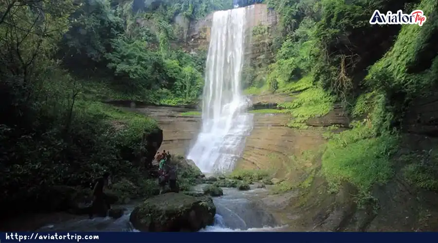 তঞ্চঙ্গ্যা শব্দে ধুপ অর্থ সাদা আর পানিকে পানিই বলা হয় অর্থাৎ সাদা পানির ঝর্ণা। মূলত এই ঝর্ণার পানি স্বচ্ছ এবং যখন অনেক উচু থেকে তার জল আছড়ে পড়ে তখন তা শুধু সাদাই দেখা যায়। তাই একে ধুপ পানির ঝর্ণা বলা হয়। সমতল থেকে এর উচ্চতা প্রায় ১৫০ মিটার এতে নানা বন্য প্রাণী হরিণ, বুনো শুকর, বনবিড়াল, সাপ বিচরণ করে। এমনকি মাঝে মাঝে সেখানে বাঘ ভাল্লুকের পদচিহ্ন ও চোখে পড়ে । এই ঝর্ণার পানি আছড়ে পড়ার শব্দ প্রায় ২ কিলোমিটার দুর থেকে শোনা যায়। আর বর্ষাকালে তা আরো সুদুরে প্রমানিত হয়।